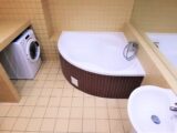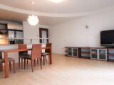Dominantou bytu je zajímavě řešený obývací pokoj 28 m2, ze kterého je vstup na balkon, 6 m2 s výhledem do malebného vnitrobloku osázeného zelení. Je zde nízká obývací stěna, TV a jídelní stůl se židlemi. Kuchyňský kout je vybaven sklokeramickou varnou deskou, vestavnou el. troubou, digestoří, vestavnou myčkou AEG, americkou lednicí s mrazákem. Byt má dva neprůchozí pokoje. První pokoj 12,54 m2 je zařízen jako hlavní ložnice. Jsou zde vestavné praktické skříně, kvalitní dvoupostel s nočními stolky. Druhý neprůchozí pokoj 15,56 m2 je zařízen jako dětský pokoj nebo pracovna pro home office. Jsou zde vytvořeny dvě pracovní místa a dvě postele s úložnými prostory. Samostatná toaleta s umyvadlem. Prostorná koupelna 7,55 m2 je s rohovou vanu a toaletou. Na chodbě bytu se nachází vestavné skříně se zrcadlem. Nábytek v celém bytě je vyhotoven na zakázku z kvalitního materiálu. Po dohodě je možné nábytek odstranit.