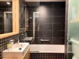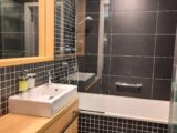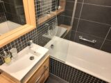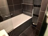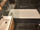Koupelna, 3,63 m2 s vanou je vybavena koupelnovým nábytkem. Je zde žebříkový radiátor.
