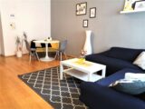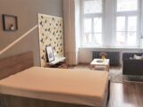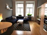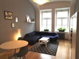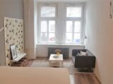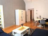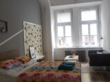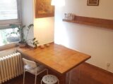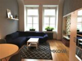 Nabízím k pronájmu světlý, prostorný byt 3+1 o rozloze 103 m2 včetně balkonu, který je orientován do tichého vnitrobloku v ulici Drtinova, Praha 5 – Smíchov. Byt je po rekonstrukci, nová koupelna se sprchovým koutem, protihluková okna, nové podlahy atd. Byt je ve zvýšeném přízemí. Je vybaven bezpečnostními dveřmi a má kamerový systém. Při vstupu do bytu je prostorná chodba, kde jsou dvě vysoké vestavné skříně a velké zrcadlo. Všechny pokoje jsou neprůchozí. Kuchyně s oknem je vybavena sklo-keramickou el. deskou, digestoří, el. troubou a lednicí s mrazákem. Dále je zde velký, jídelní stůl se židlemi a je zde vstup na balkon s výhledem do vnitrobloku. Je zde také komora, kde je umístěna sušička. Kuchyň je vybavena nádobím. Obývací pokoj s okny do klidné ulice je vybaven rohovou sedačkou, konferenčním stolkem, zrcadlovou skříní, také designovým křeslem s vlastním stolkem. Dále je v bytě ložnice s manželskou postelí, skříní se zrcadlem, pracovním stolem se židlí a sofa s konferenčním stolkem. Druhá ložnice má postel na patro a v místnosti je designové křeslo se stolečkem, pracovní stůl se židlí. Je zde možnost sledování tv projekce. Z tohoto pokoje je také vstup na balkon, kde je stůl s dvěmi židlemi. Byt má oddělenou toaletu a nově zrekonstruovanou koupelnu se zrcadlem, skříní a pračkou. Byt je vybaven ručníky, povlečením a lůžkovinami. Velmi dobrá dopravní dostupnost, cca 3 min od stanice metra B, Anděl. Veškerá občanská vybavenost v místě, MŠ, ZŠ, pošta, bankomat, lékárna, různé obchody, restaurace atd. V blízkosti OC Nový Smíchov. Pohodlné parkování před domem.